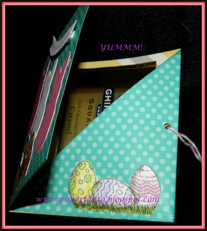 5. Embellish and punch a small hole for string. I stamped all my images and fussy cut them out. The eggs were colored in with colored pencils and CTMH markers.